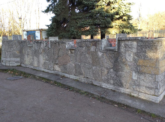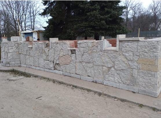 Вид работы: очистка потемневшей стены из гранитного камня от зелени, мха и атмосферных осадков