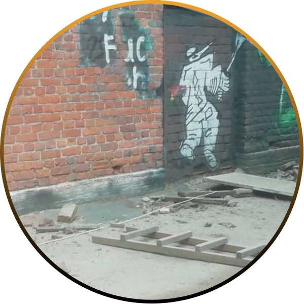 Вид работы: очистка фасада здания от граффити и атмосферных осадков