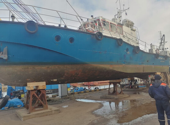 Вид работы: пескоструйная обработка судна, грунтовка поверхности и безвоздушная покраска в два слоя