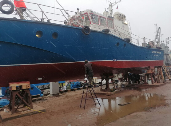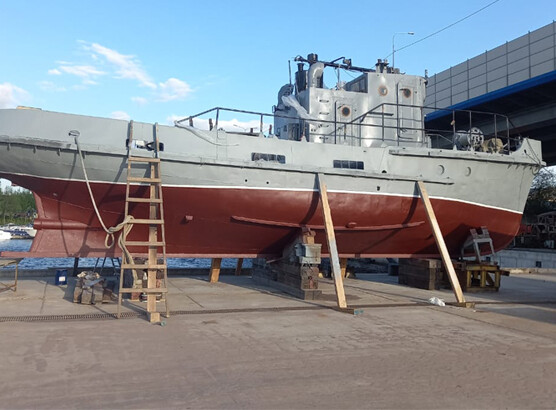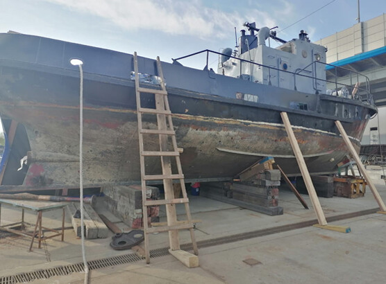Вид работы: пескоструйная обработка судна, грунтовка поверхности и безвоздушная покраска в два слоя
