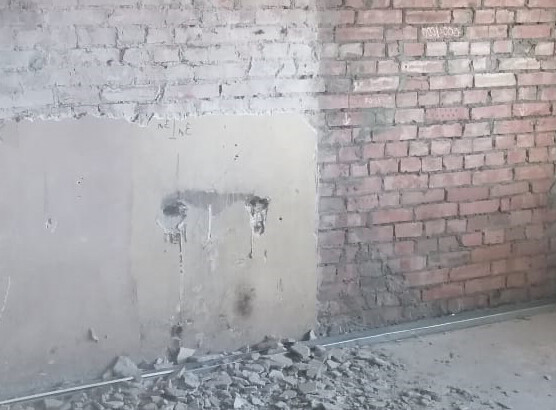 Вид работы: подготовка внутренних стен из кирпича перед очисткой пескоструем