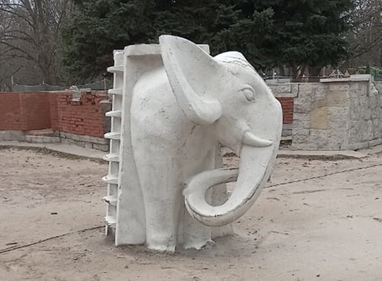 Вид работы: очистка штучных работ скульптора А. Киселева (слон, черепаха, крокодил) от краски и атмосферных осадков
