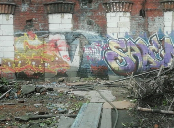 Пескоструй кирпичной стены, 670 м2 (Обводный канал)
